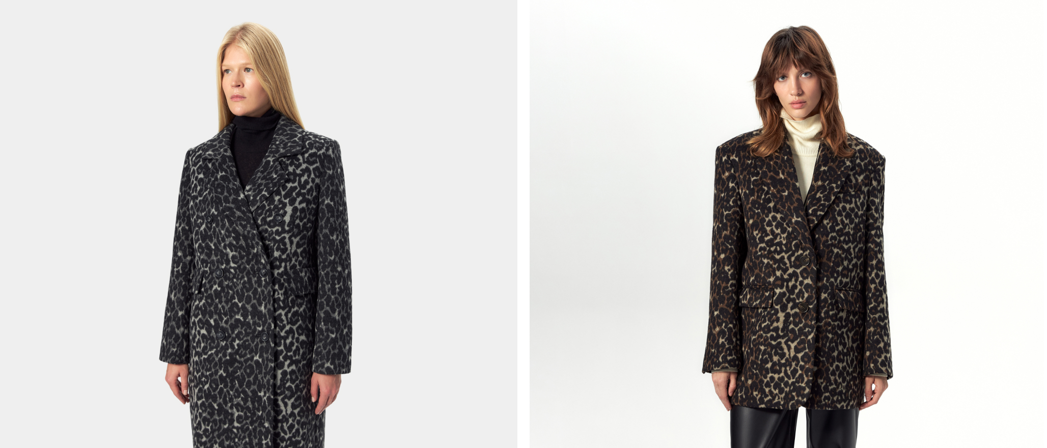 Помимо цветовых решений коллекция предлагает разнообразие моделей: укороченное пальто-жакет отлично подходит для межсезонья, когда хочется лёгкости и защиты от первых прохладных дней. Длинное леопардовое пальто становится незаменимым выбором для устоявшейся холодной погоды: утеплённая спинка и удлинённый крой обеспечивают тепло и уют, а сам фасон органично перекликается с трендом на макси-модели.