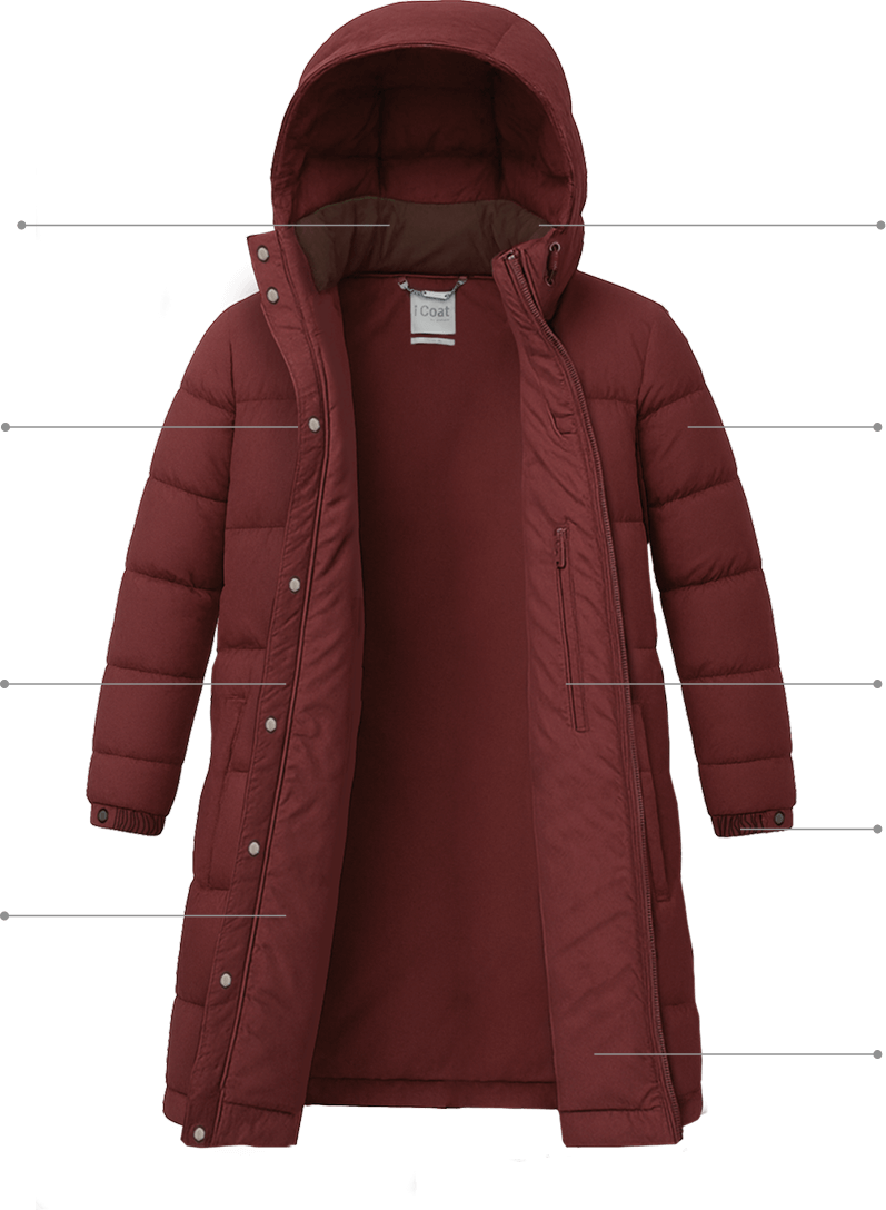 Двухзамковая молния — позволяет расстегивать пуховик сверху и снизу. Удобно при ходьбе и сидении, не стягивает низ и обеспечивает дополнительный комфорт в движении.